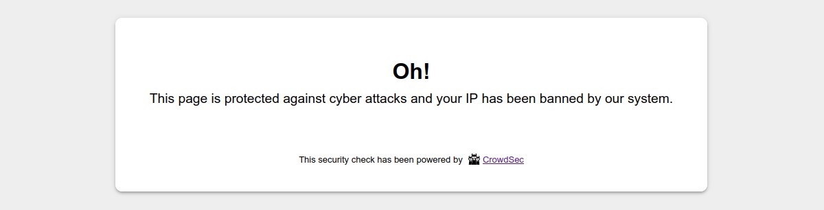 This Remediation Component allows you to protect your PHP application from IPs that have been detected by CrowdSec. Depending on the decision taken by CrowdSec, user will either get denied (403) or have to fill a captcha (401).