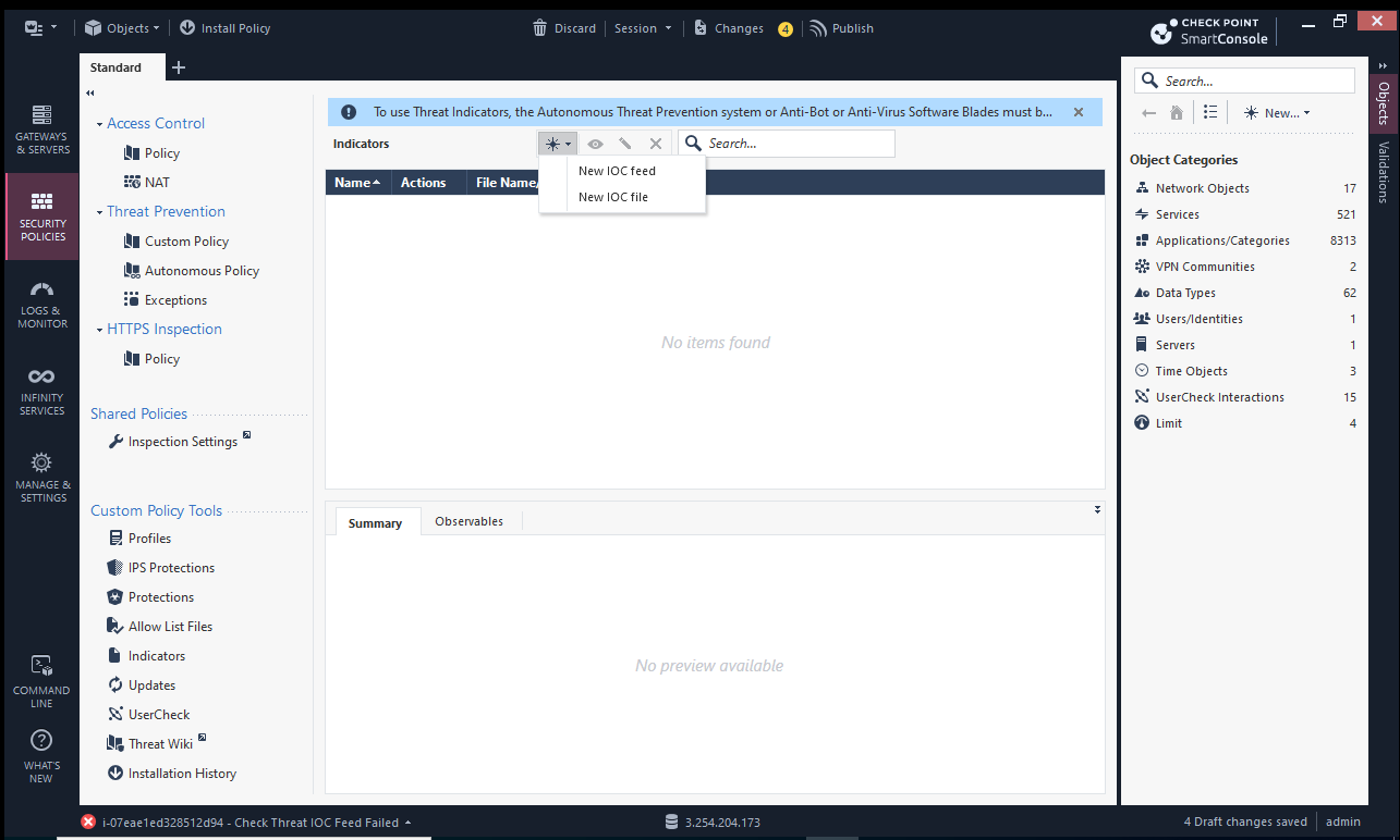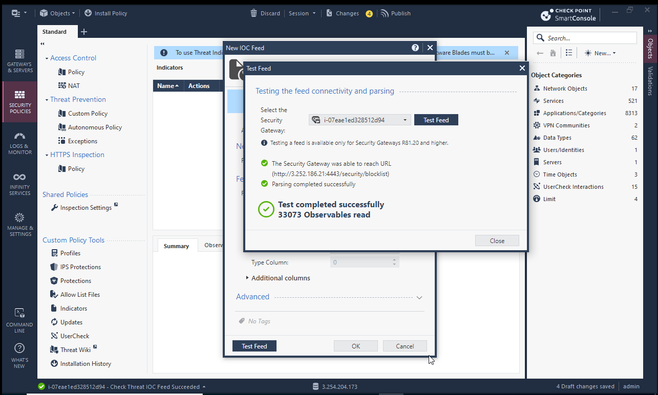 Before you begin, please ensure your Checkpoint device supports ingesting blocklists. If you are unsure, please refer to the Checkpoint documentation or contact Checkpoint support.